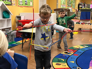 We worked on using tiny beads and pipe cleaners to make snowflakes. This was a great fine motor activity for these little hands, and they had so much fun with it.
